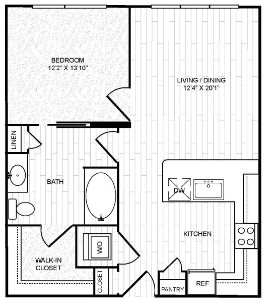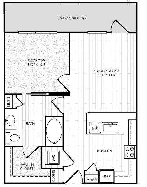 1 Dormitorio, 1 Baño, 1116 pies²Disponible Nov 27El más grandeEsta opción tiene las unidades más grandes para este modeloGalería del Modelo