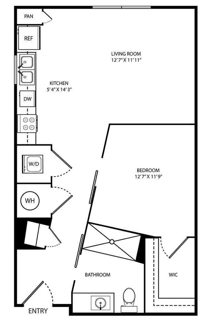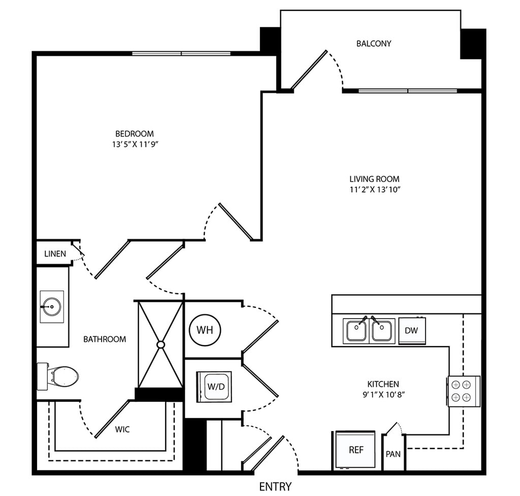 1 Dormitorio, 1 Baño, 737 pies²El más grandeEsta opción tiene las unidades más grandes para este modeloGalería del Modelo