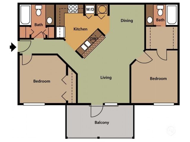 2 Dormitorios, 2 Baños, 921 pies²Galería del Modelo