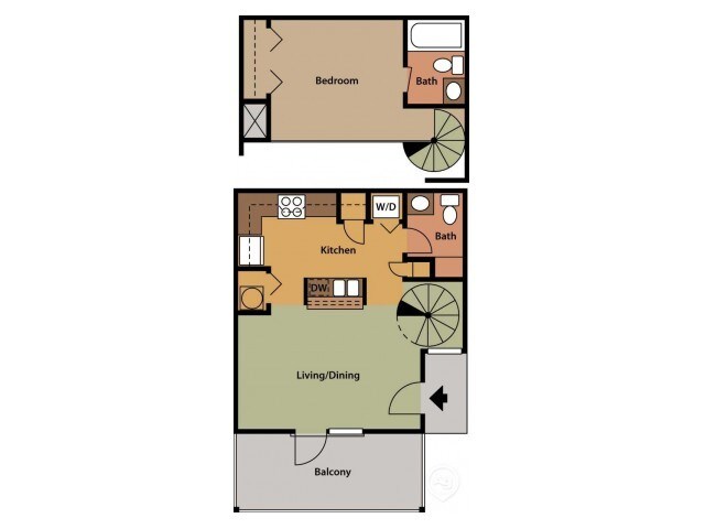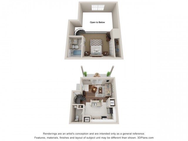 Modelo de apartamento: Luna - 1/1.5 Loft Upgrade1 Dormitorio, 1 Baño, 673 sq ftNo Disponible![]()