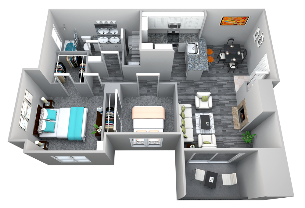 2 Dormitorios, 2 Baños, 1020 pies²Galería del Modelo