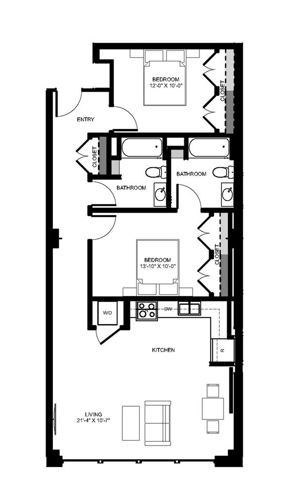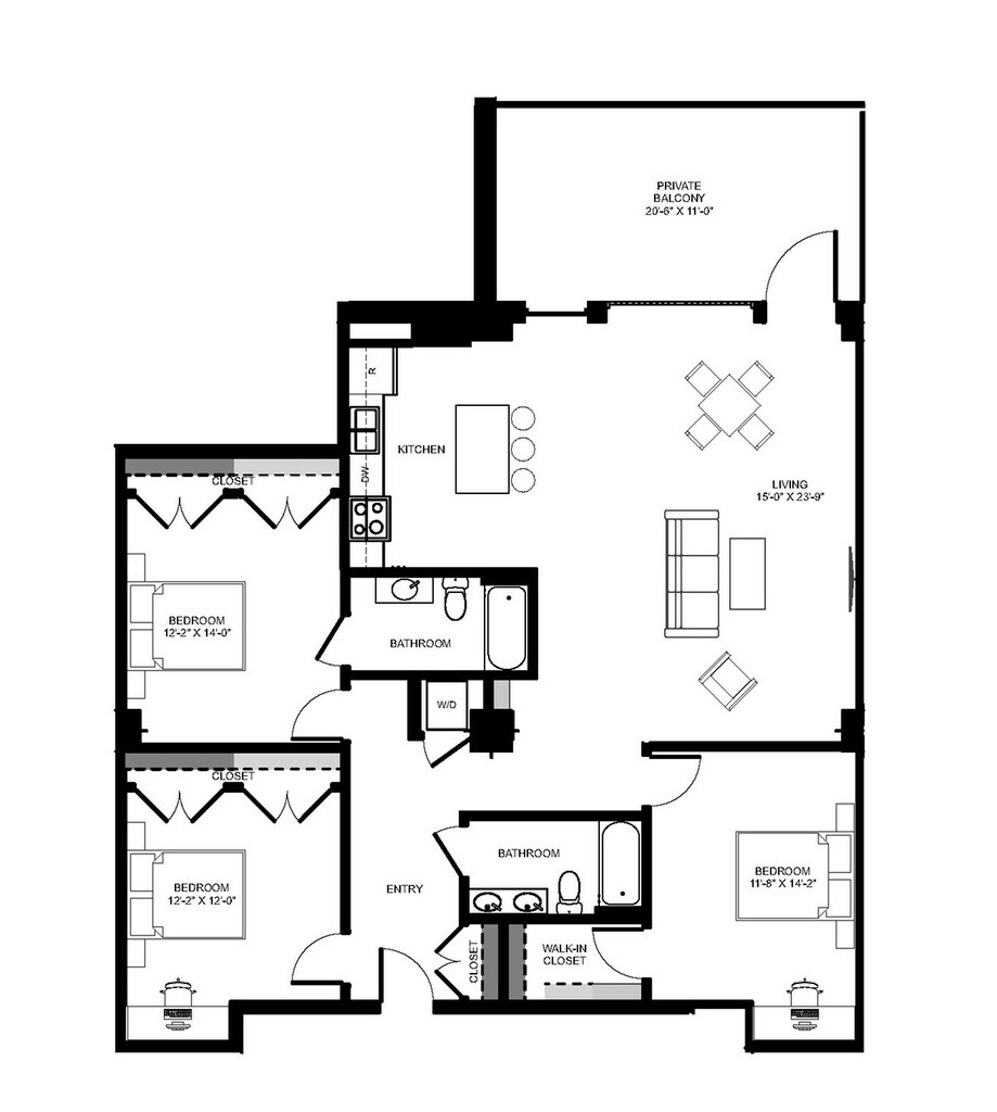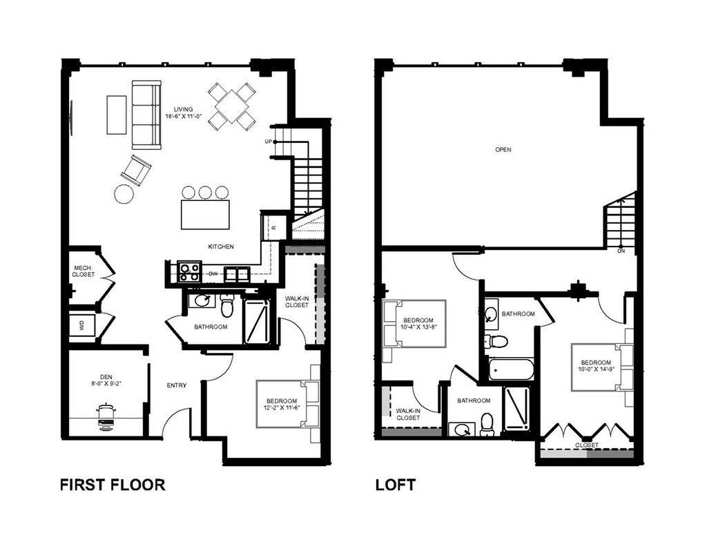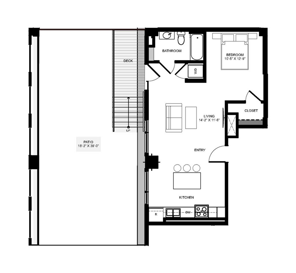 1 Dormitorio, 1 Baño, 818-856 pies²Disponible AhoraGalería del Modelo