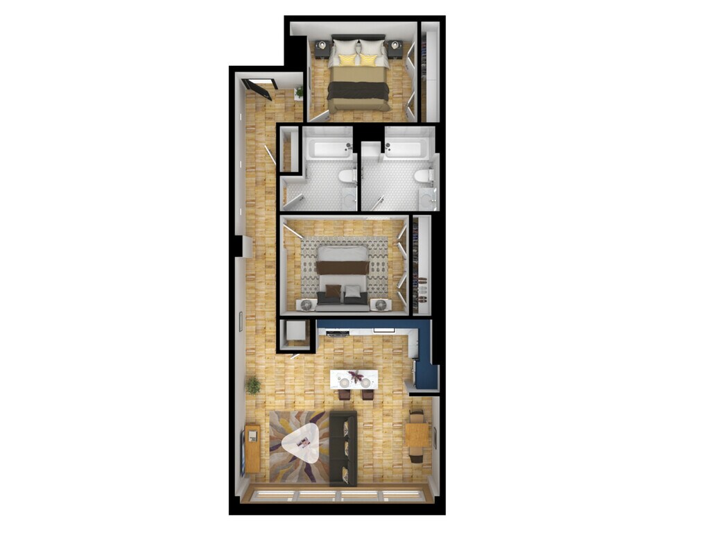 Modelo de apartamento: 1BD 1BADesde $1,4151 Dormitorio, 1 Baño, 818-856 sq ftDisponible Ahora![]()