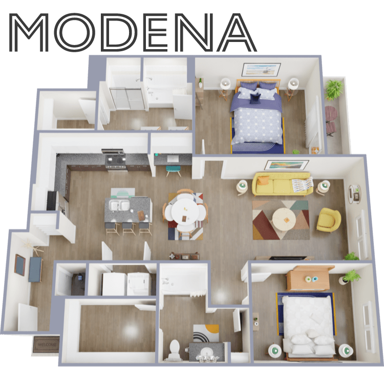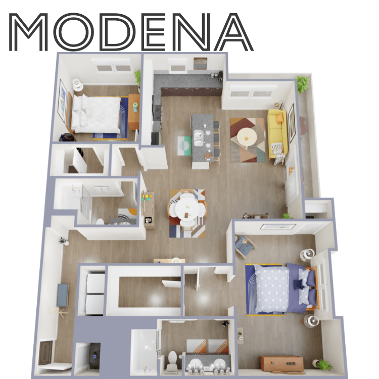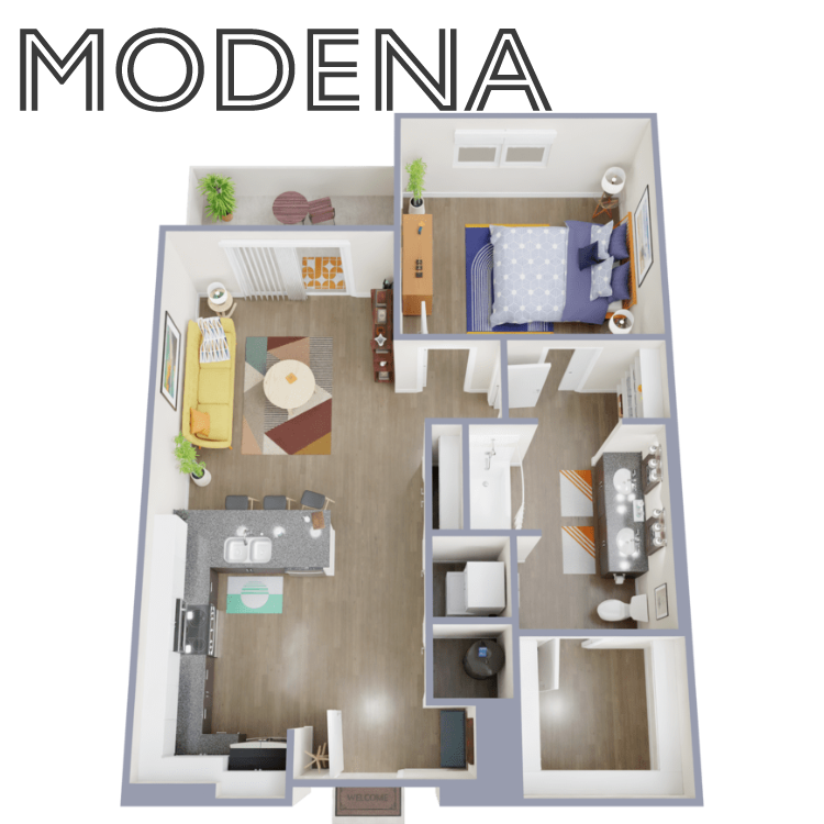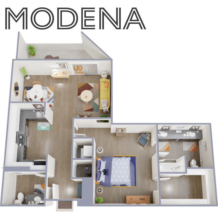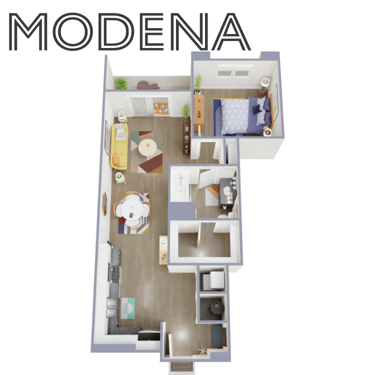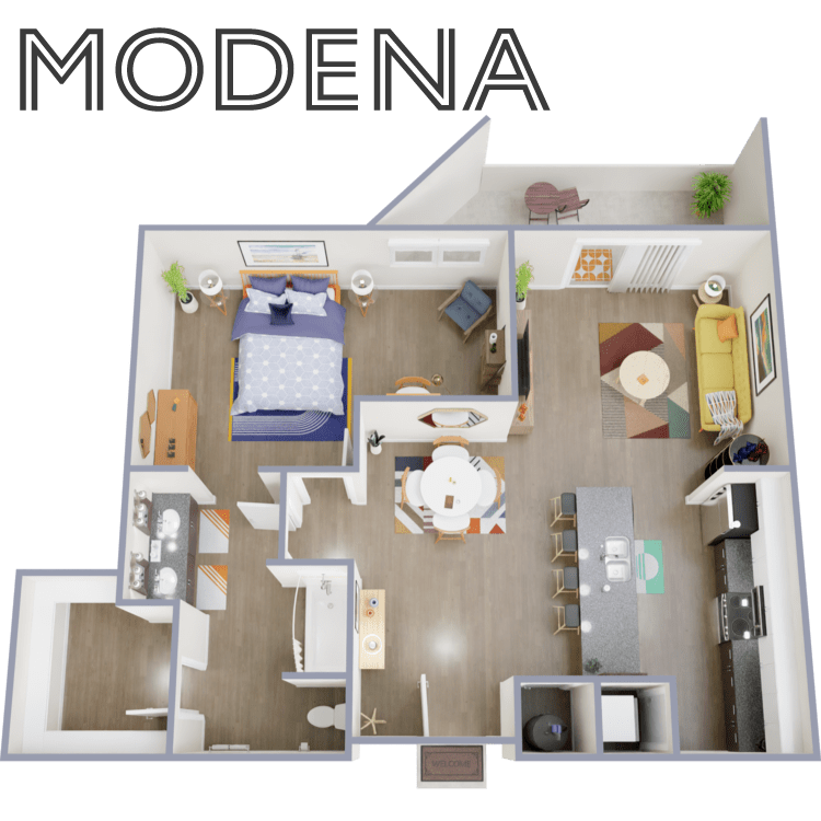 Ofrecemos en alquiler apartamentos con planos de planta de una y dos habitaciones. Cada hogar exclusivo cuenta con cocinas estilo chef con elegante iluminación contemporánea, entrada sin llave con Bluetooth, baños de gran tamaño y vestidores grandes. Los excelentes apartamentos de Modena admiten mascotas e incluyen un parque para perros en el complejo y una estación de lavado para perros para el disfrute de tu mascota. * Los planos de planta y los acabados interiores pueden variar.