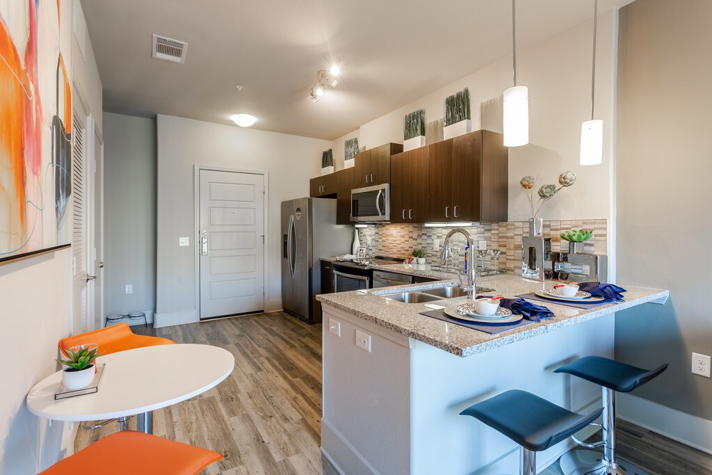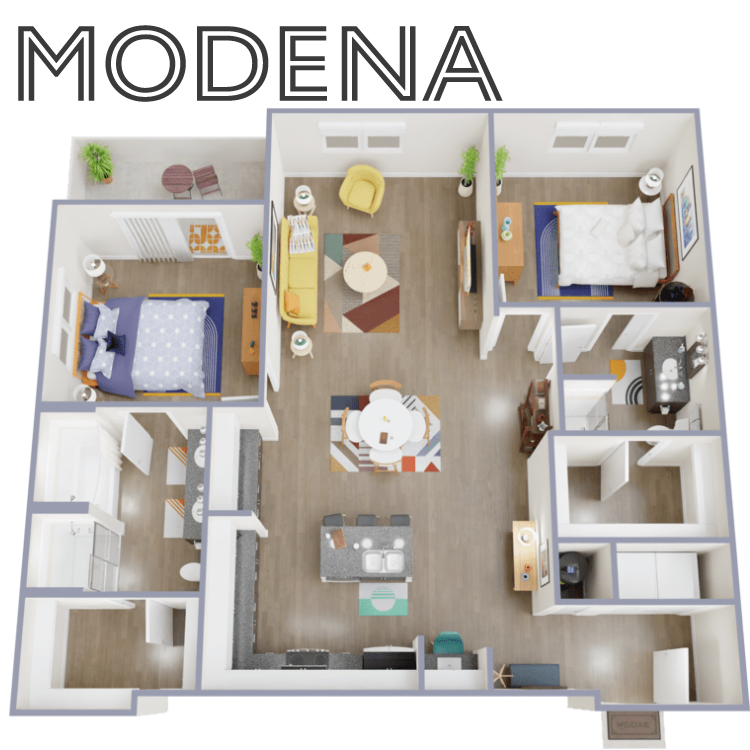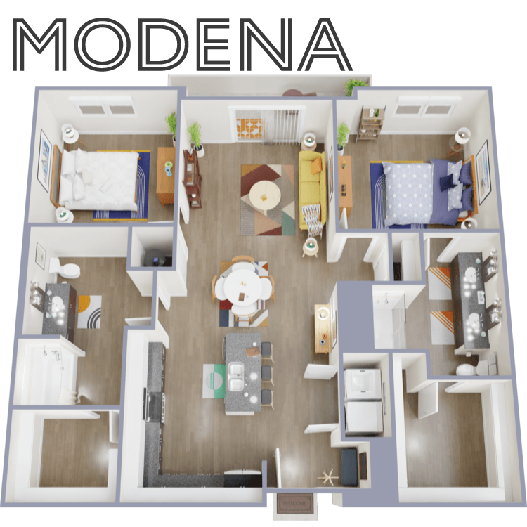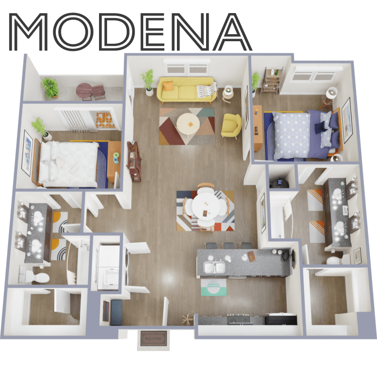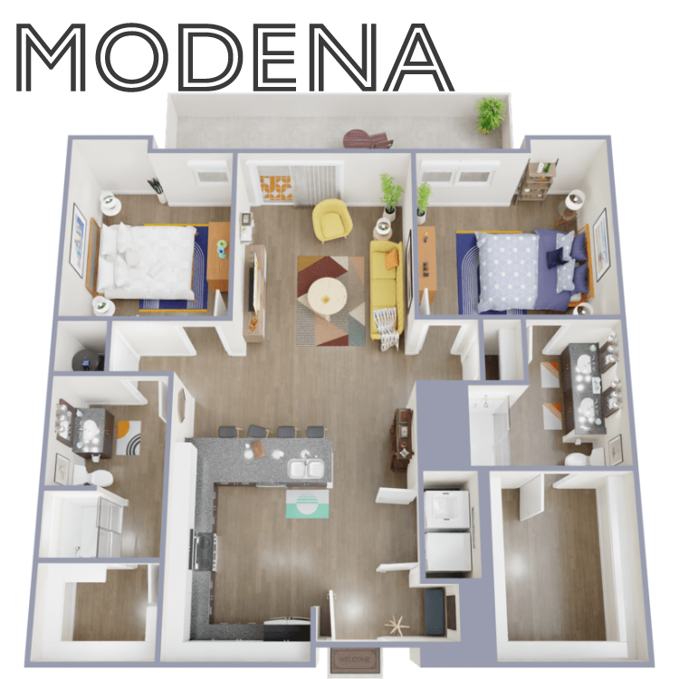 Ofrecemos en alquiler apartamentos con planos de planta de una y dos habitaciones. Cada hogar exclusivo cuenta con cocinas estilo chef con elegante iluminación contemporánea, entrada sin llave con Bluetooth, baños de gran tamaño y vestidores grandes. Los excelentes apartamentos de Modena admiten mascotas e incluyen un parque para perros en el complejo y una estación de lavado para perros para el disfrute de tu mascota. * Los planos de planta y los acabados interiores pueden variar.