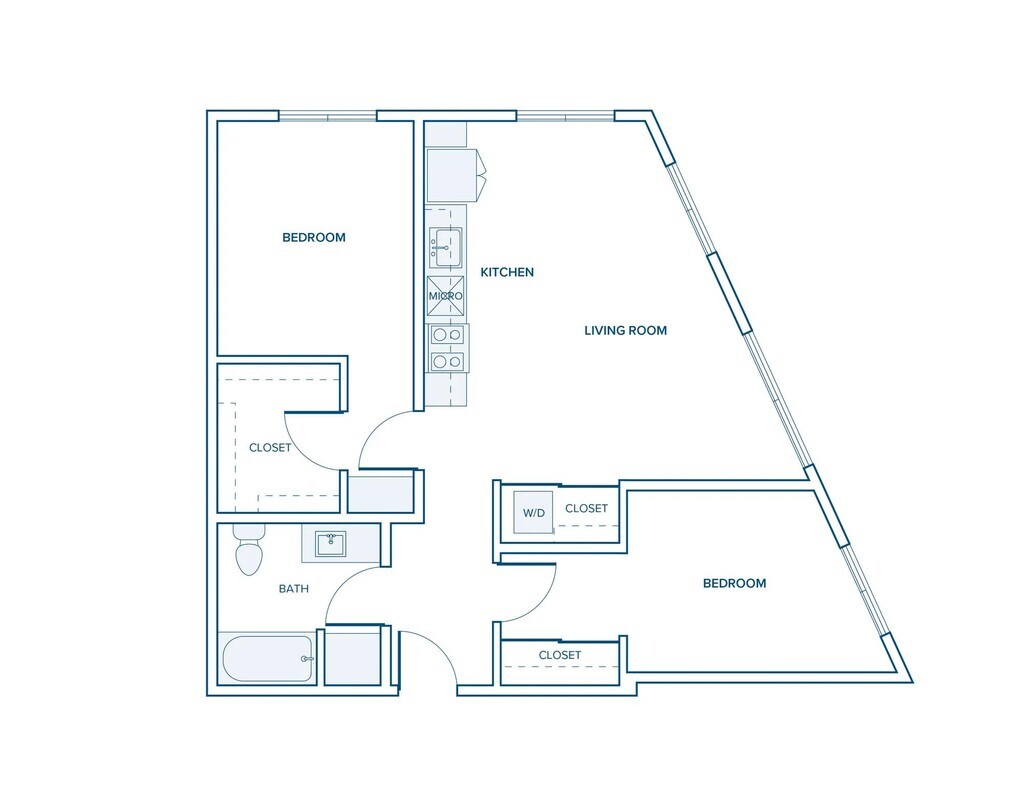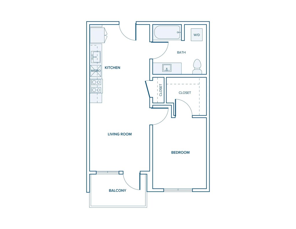 Modelo de apartamento: A01Desde $1,6971 Dormitorio, 1 Baño, 599 sq ftDisponible Ahora![]()