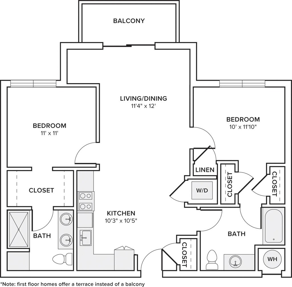 Modelo de apartamento: A071 Dormitorio, 1 Baño, 681 sq ftDisponible November 20, 2025![]()