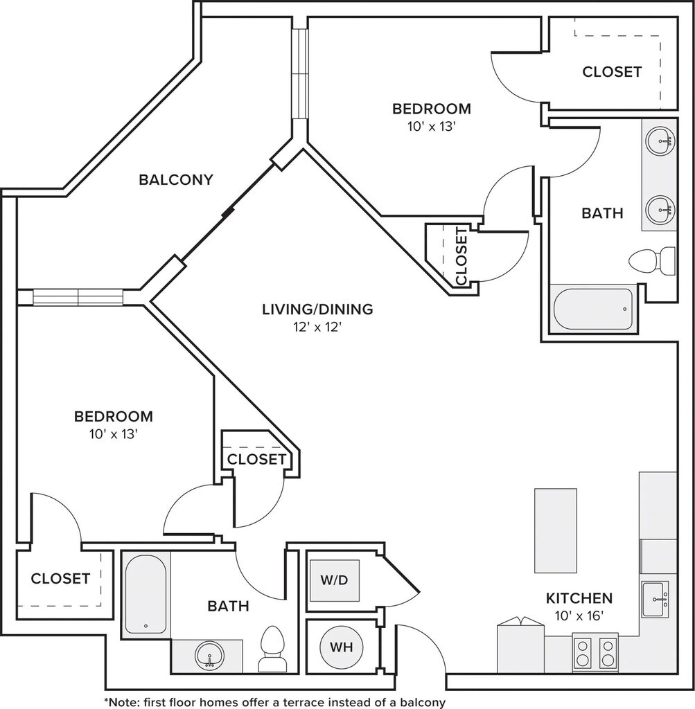 2 Dormitorios, 2 Baños, 1161-1197 pies²Disponible AhoraGalería del Modelo