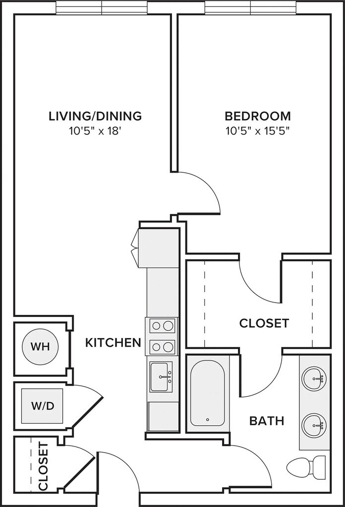 Modelo de apartamento: A031 Dormitorio, 1 Baño, 740-741 sq ftDisponible Ahora![]()