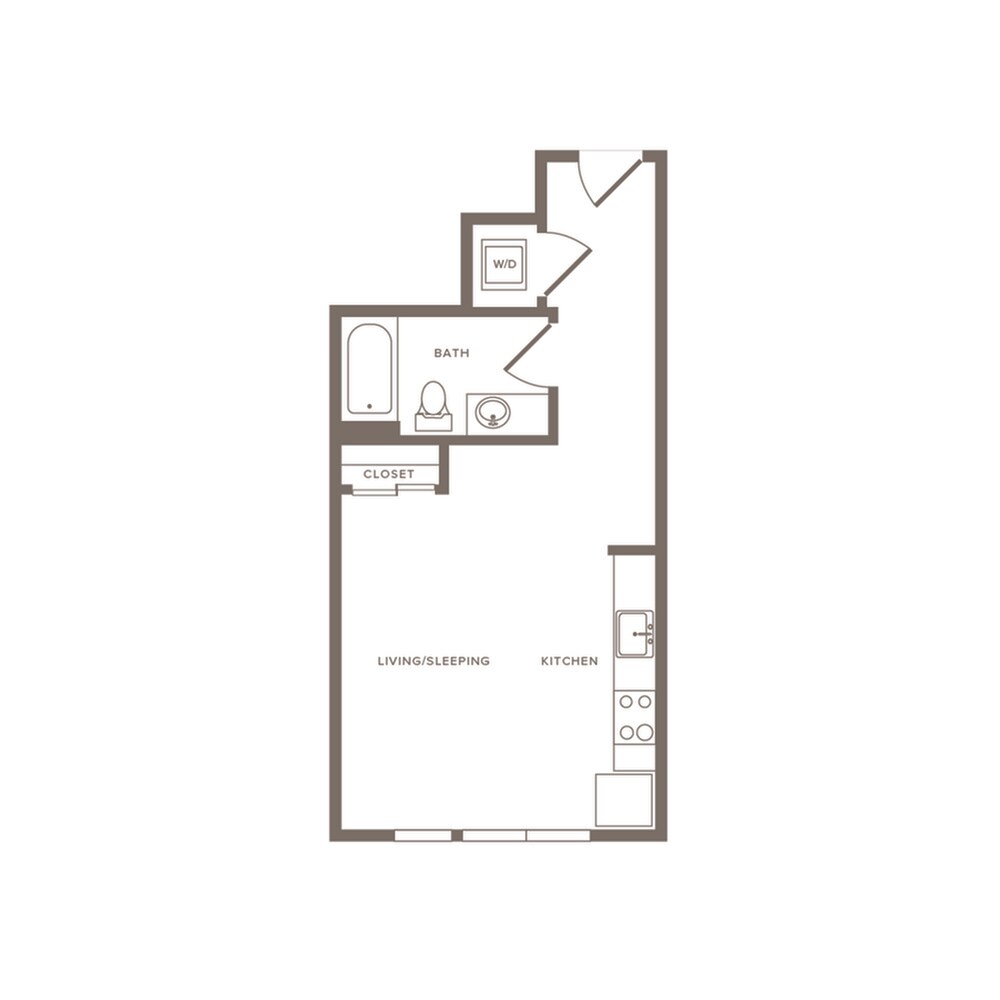 S02 - Plano 1 Unidad de apartamento: 2-613Modelo de apartamento: S02Estudio, 1 Baño, 473 sq ftDisponible AhoraZS01 MFTE-INCOME RESTRICTED