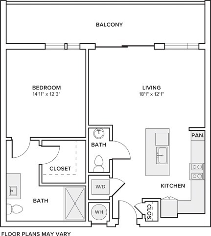 1 Dormitorio, 1.5 Baños, 825 pies²Disponible Dec 7Galería del Modelo