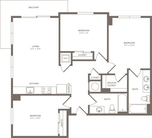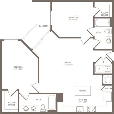 Modelo de apartamento: A041 Dormitorio, 1 Baño, 662 sq ftDisponible Ahora![]()