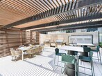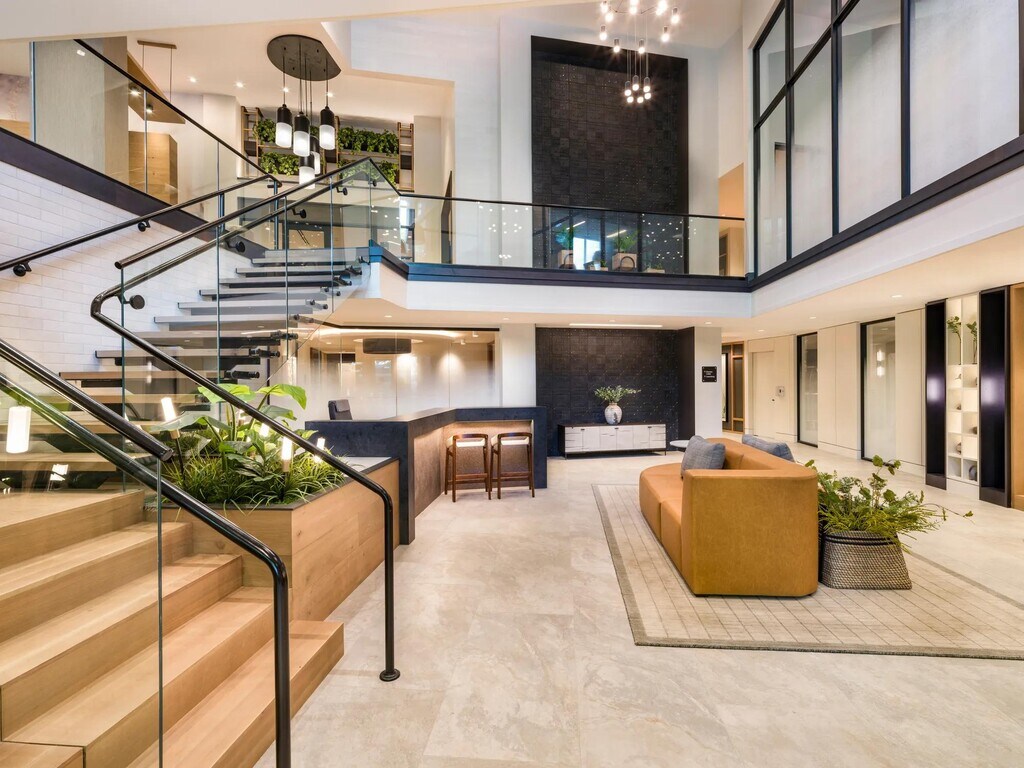 - Expansive clubroom with gathering space, demonstration kitchen, and outdoor lounge area