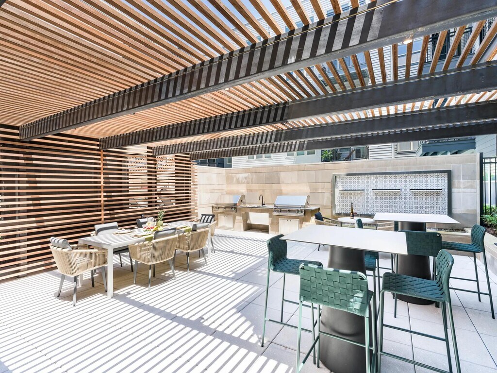 - Outdoor courtyard with grilling areas and bar