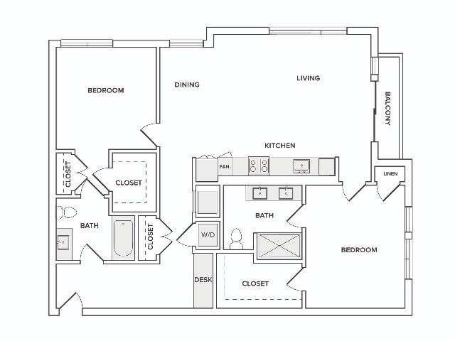 1 Dormitorio, 1 Baño, 711 pies²Precio Mensual TotalDisponible AhoraPrecio Mensual Total
