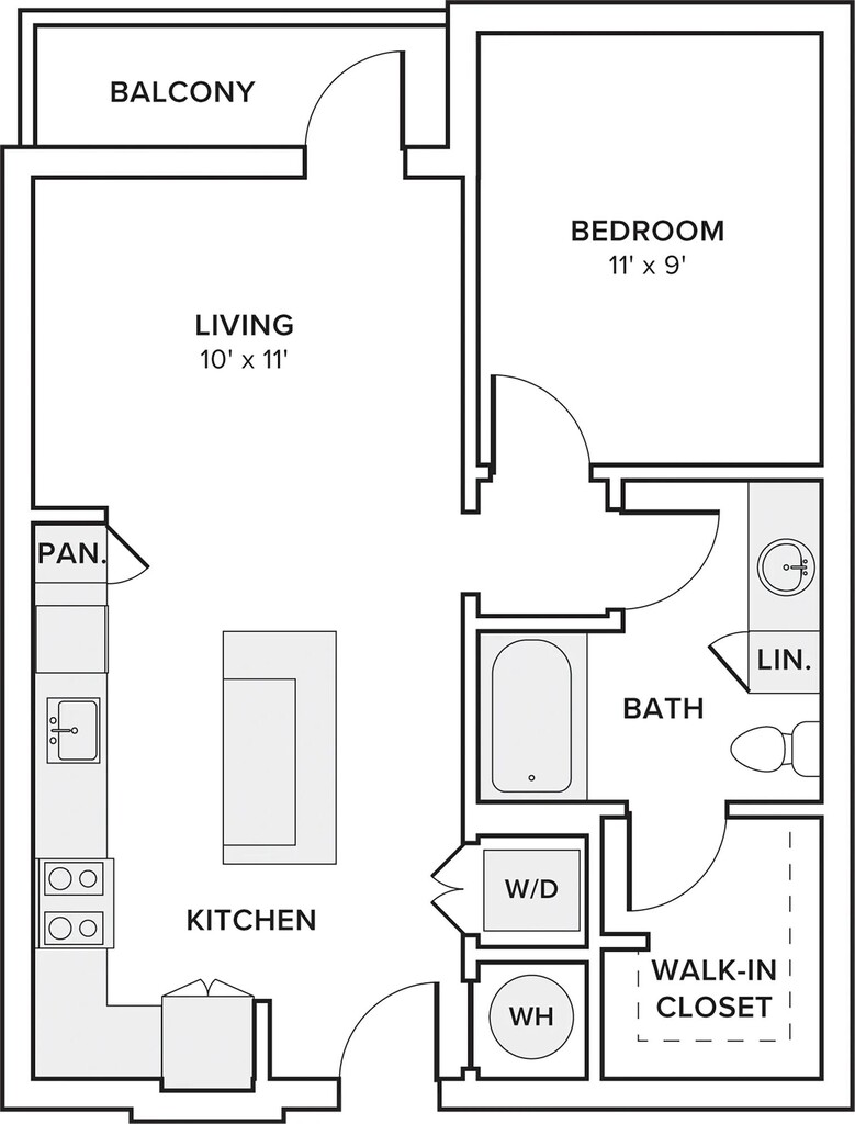 1 Dormitorio, 1 Baño, 692-721 pies²Disponible AhoraGalería del Modelo