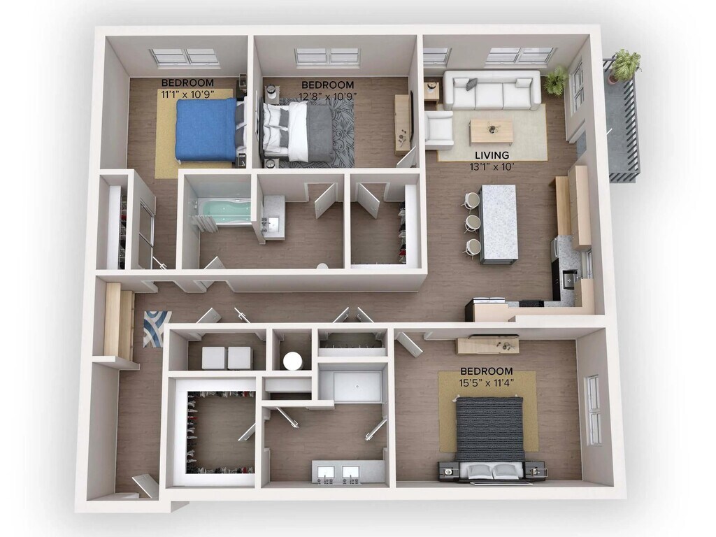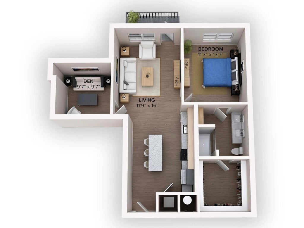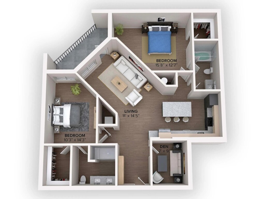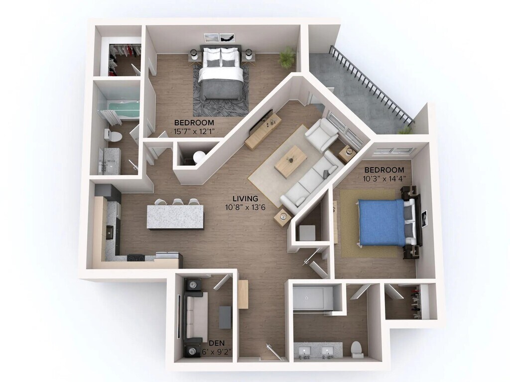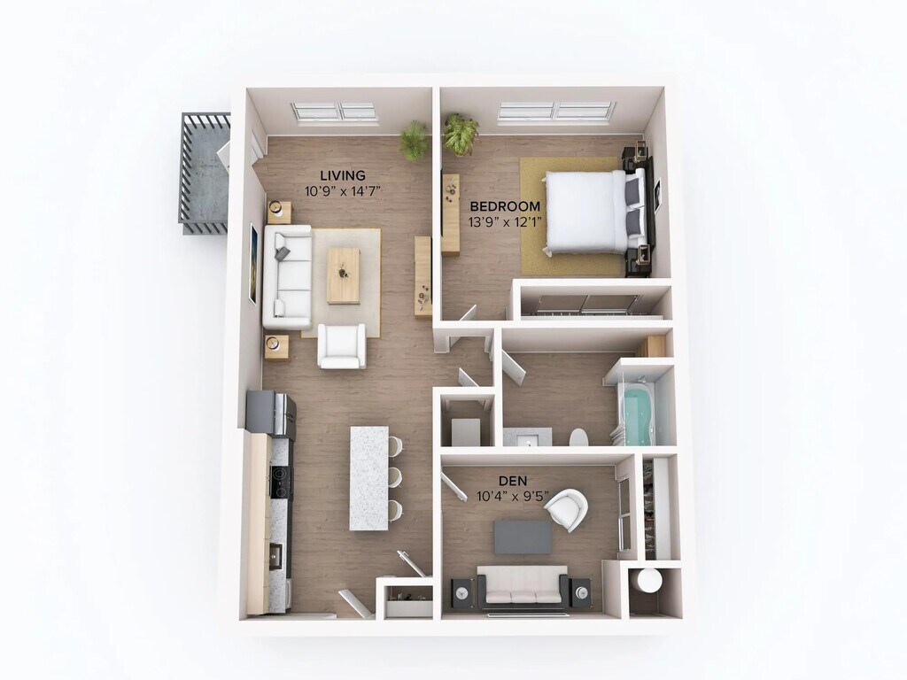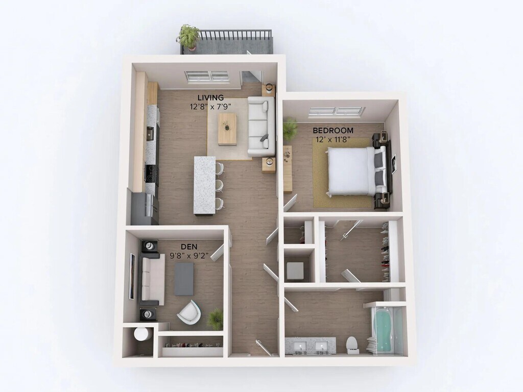 - Studio, 1-, 2-, and 3-bedroom homes with den and loft layouts available