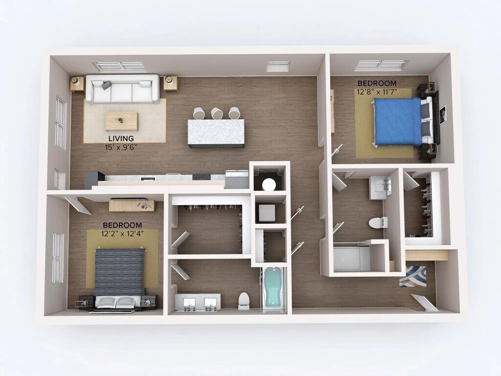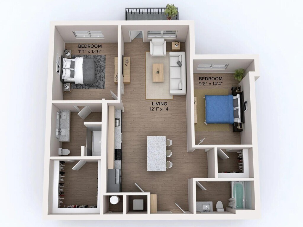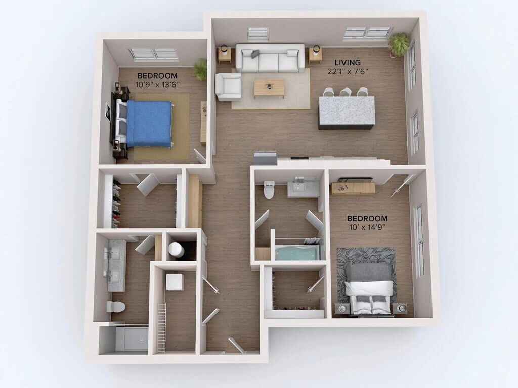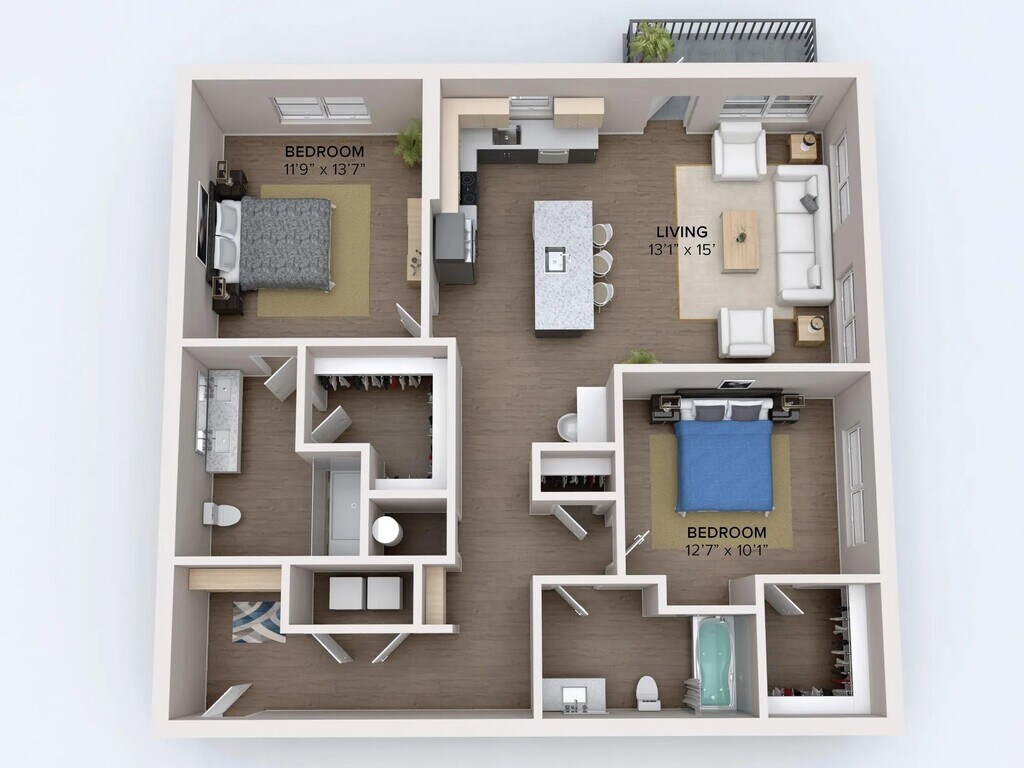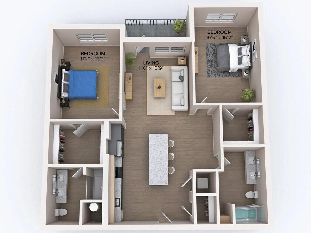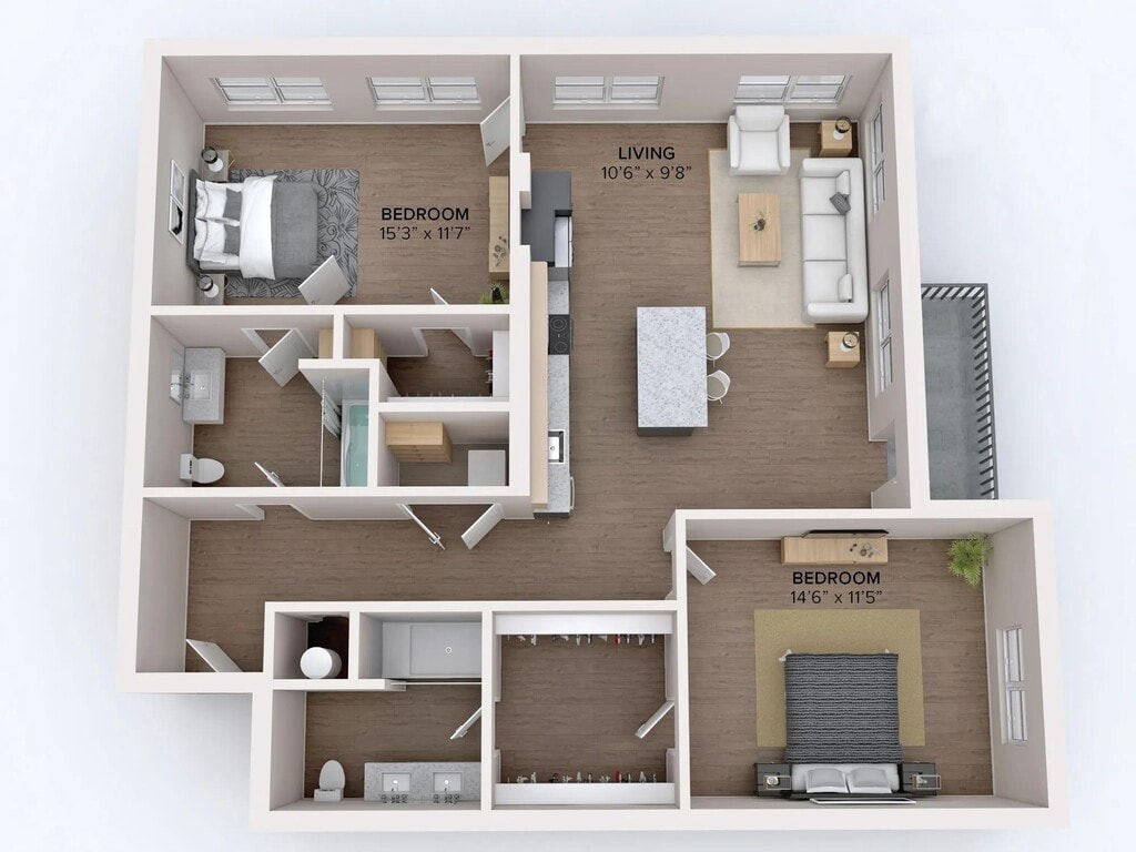 - Studio, 1-, 2-, and 3-bedroom homes with den and loft layouts available