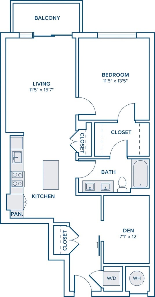 Modelo de apartamento: A04Desde $1,9711 Dormitorio, 1 Baño, 738 sq ftDisponible AhoraLos planos son representaciones artísticas. Todas las dimensiones son aproximadas. El producto y las especificaciones reales pueden variar en tamaño o detalle. No todas las características están disponibles en cada vivienda en alquiler. Por favor, consulta con un representante para obtener más detalles.
