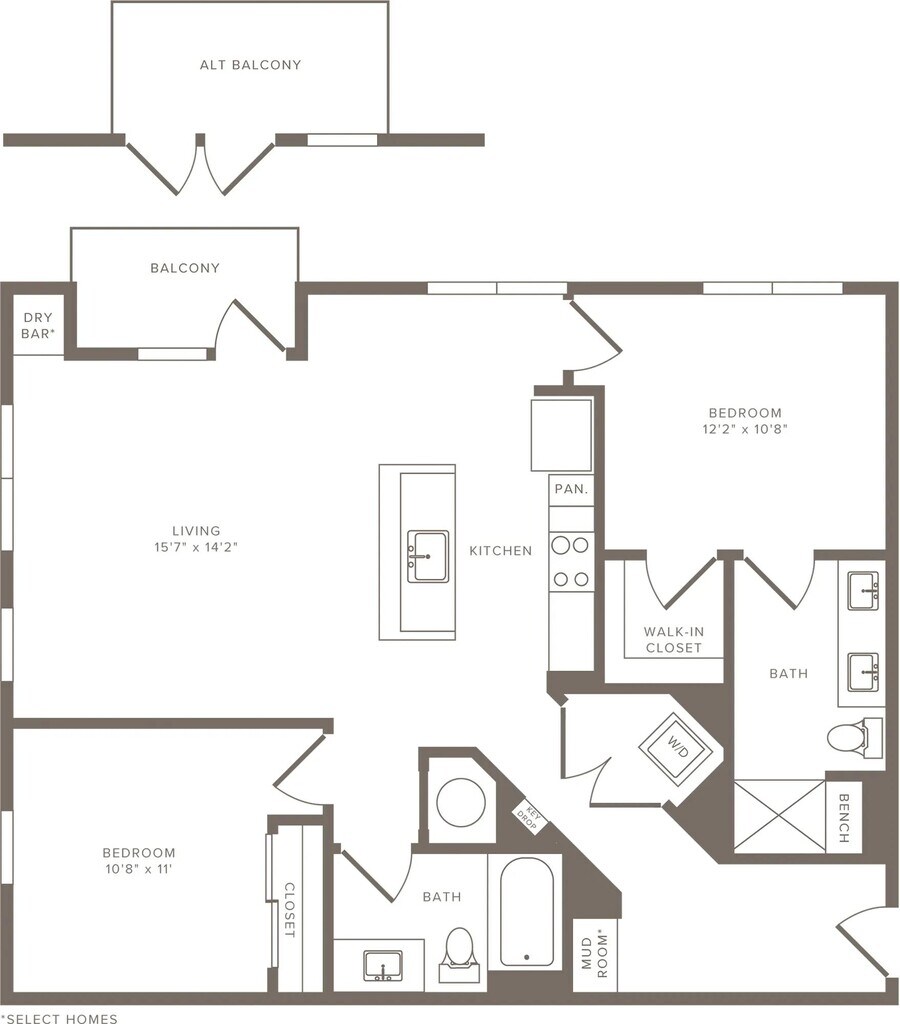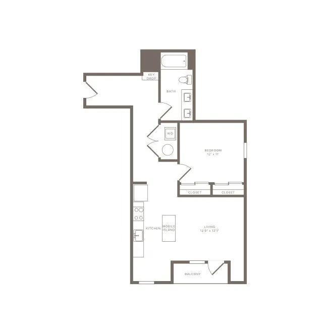 Estudio, 1 Baño, 526-639 pies²Disponible AhoraEl más grandeEsta opción tiene las unidades más grandes para este modeloGalería del Modelo