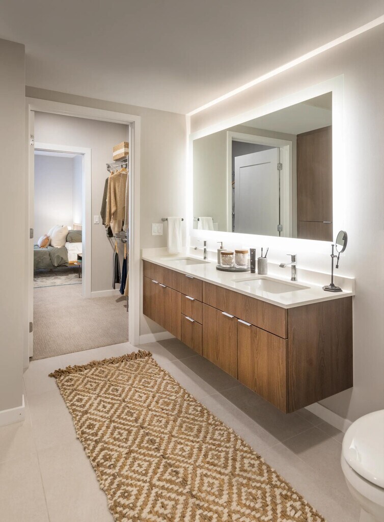- Duchas con bancos incorporados, encimeras de cuarzo y puertas de vidrio sin marco o bañeras de gran tamaño*