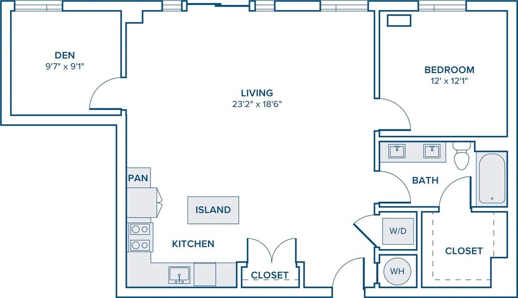 Modelo de apartamento: A03Desde $1,6201 Dormitorio, 1 Baño, 740 sq ftDisponible AhoraLos planos son representaciones artísticas. Todas las dimensiones son aproximadas. El producto y las especificaciones reales pueden variar en tamaño o detalle. No todas las características están disponibles en cada vivienda en alquiler. Por favor, consulta con un representante para obtener más detalles.