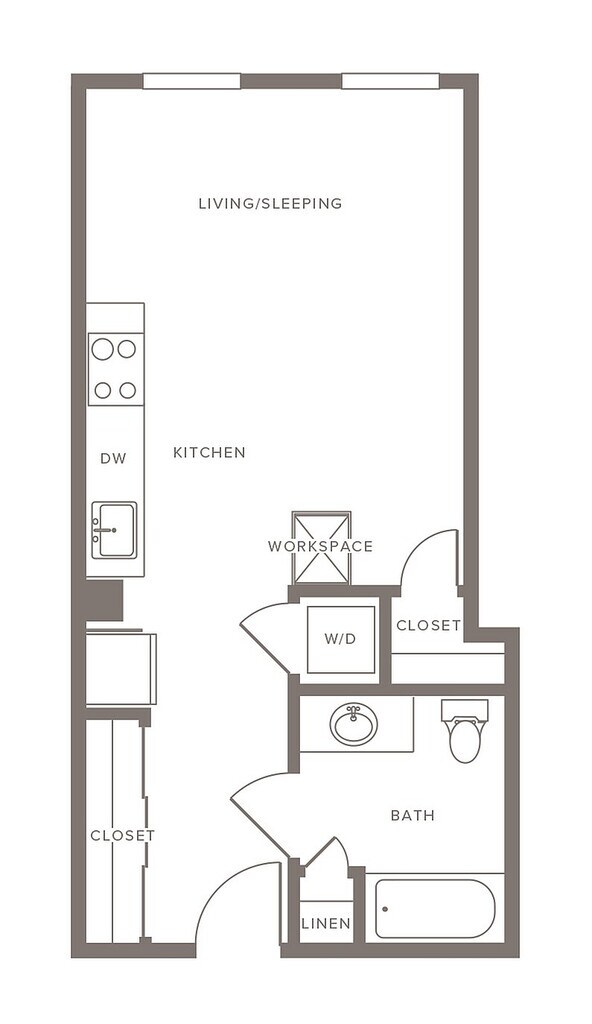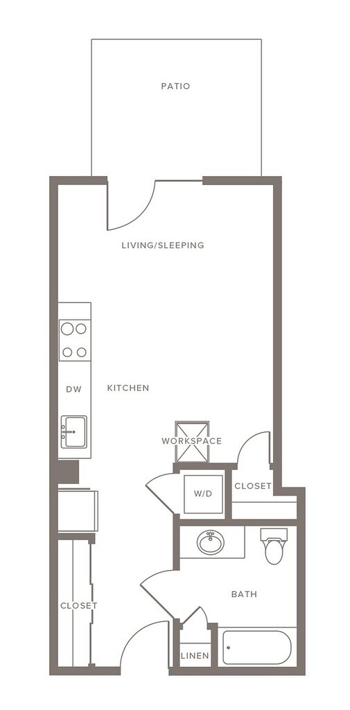S02 - Studio - Plano 1 Los planos son representaciones artísticas. Todas las dimensiones son aproximadas. El producto y las especificaciones reales pueden variar en tamaño o detalle. No todas las características están disponibles en cada vivienda en alquiler. Por favor, consulta con un representante para obtener más detalles.
