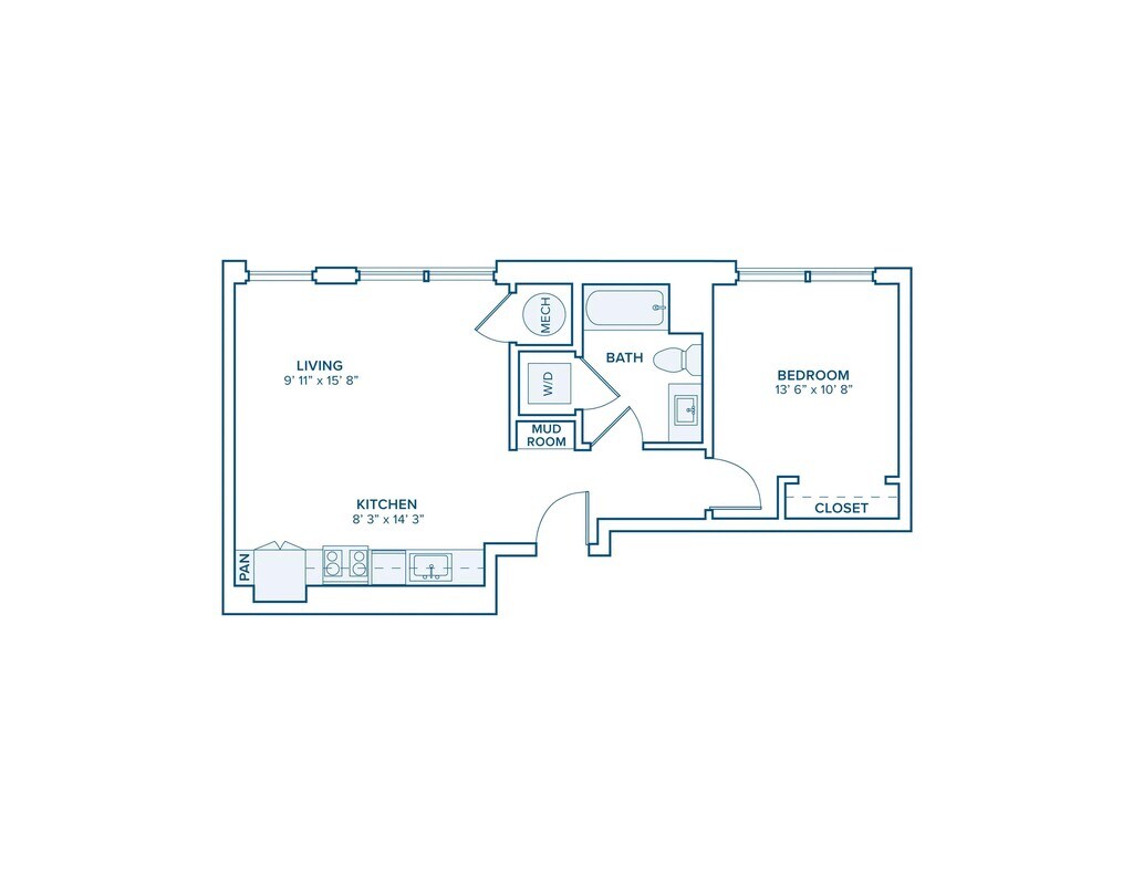 1 Dormitorio, 1 Baño, 716 pies²Disponible AhoraGalería del Modelo