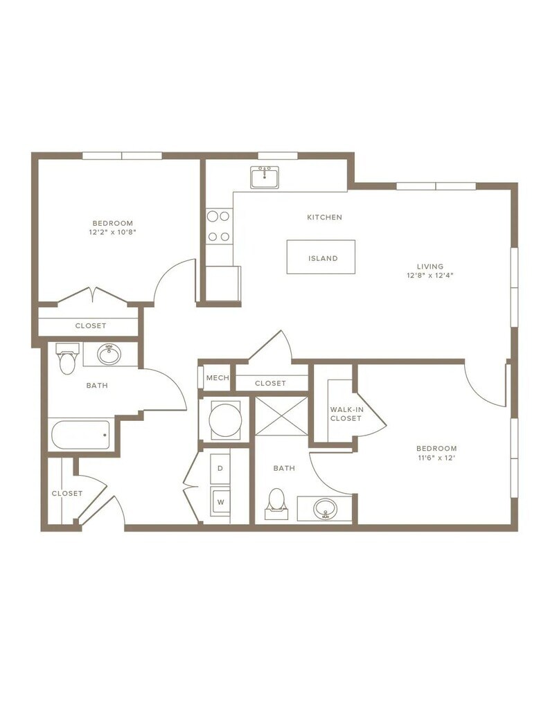 Modelo de apartamento: A11 Dormitorio, 1 Baño, 826 sq ftDisponible December 5, 2025![]()
