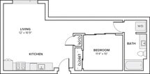 Modelo de apartamento: ZS01 (MFTE) Income Restricted$1,525Estudio, 1 Baño, 482-529 sq ftDisponible AhoraLos planos son representaciones artísticas. Todas las dimensiones son aproximadas. El producto y las especificaciones reales pueden variar en tamaño o detalle. No todas las características están disponibles en cada vivienda en alquiler. Por favor, consulta con un representante para obtener más detalles.
