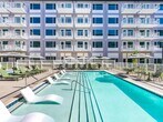 - Resort-style pool with spacious sundeck, lounge seating, umbrellas, and spa
