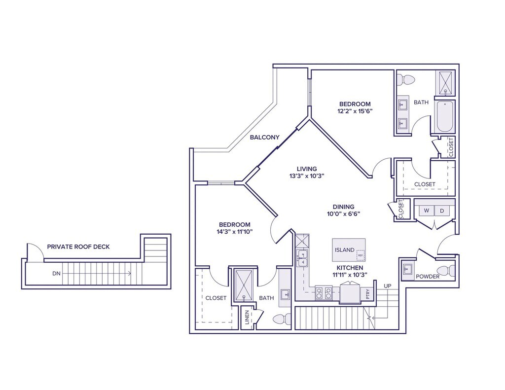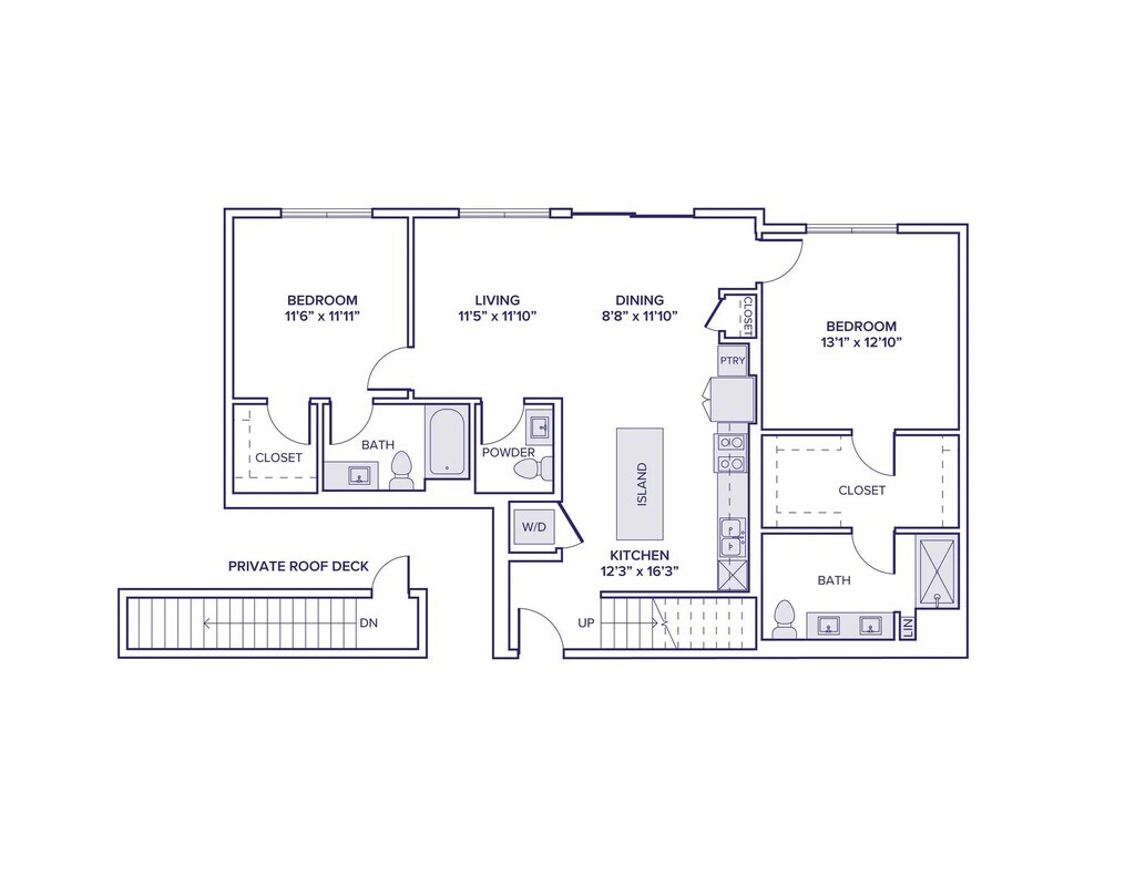 Modelo de apartamento: RA02Desde $2,2991 Dormitorio, 1.5 Baños, 851 sq ftDisponible Ahora![]()