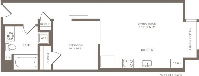 Estudio, 1 Baño, 358-362 pies²Disponible AhoraGalería del Modelo