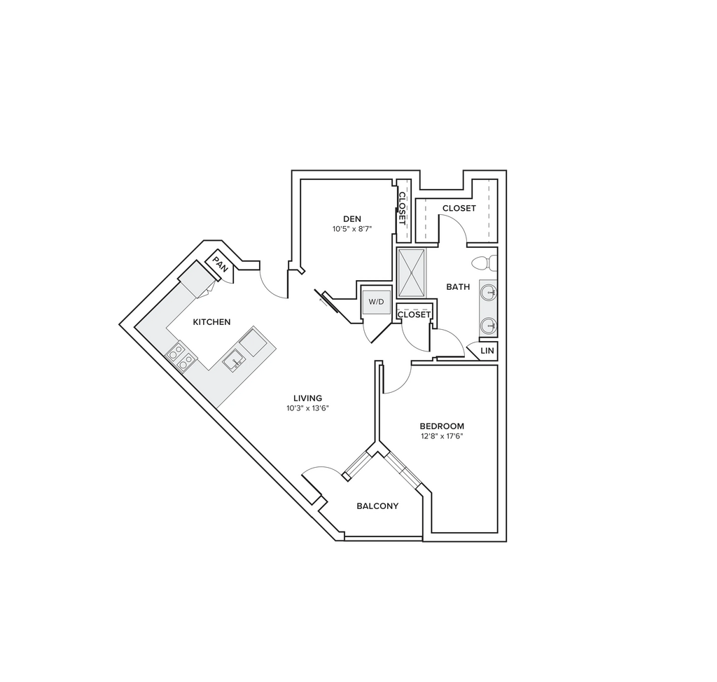 Modelo de apartamento: A03Desde $1,6901 Dormitorio, 1 Baño, 732 sq ftDisponible Ahora![]()