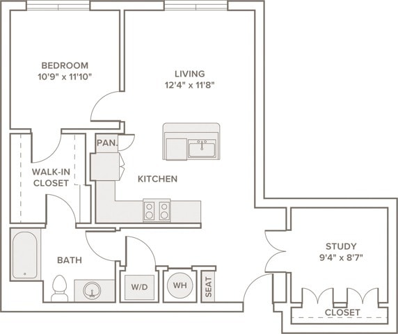 Estudio, 1 Baño, 573 pies²Disponible AhoraGalería del Modelo