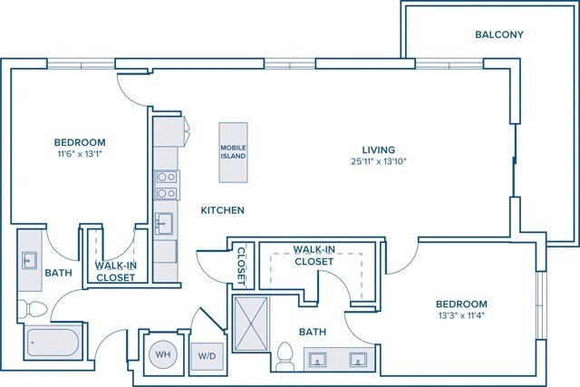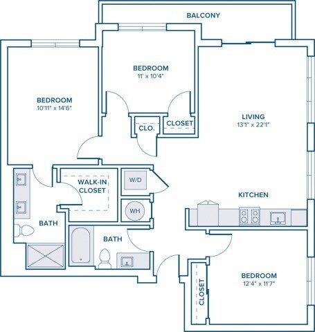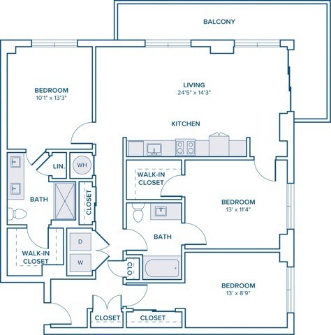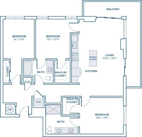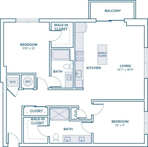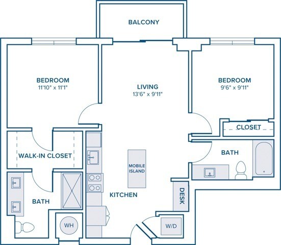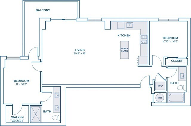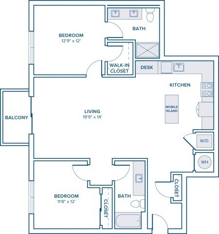 Modelo de apartamento: A07Desde $2,6251 Dormitorio, 1 Baño, 758 sq ftDisponible Ahora![]()
