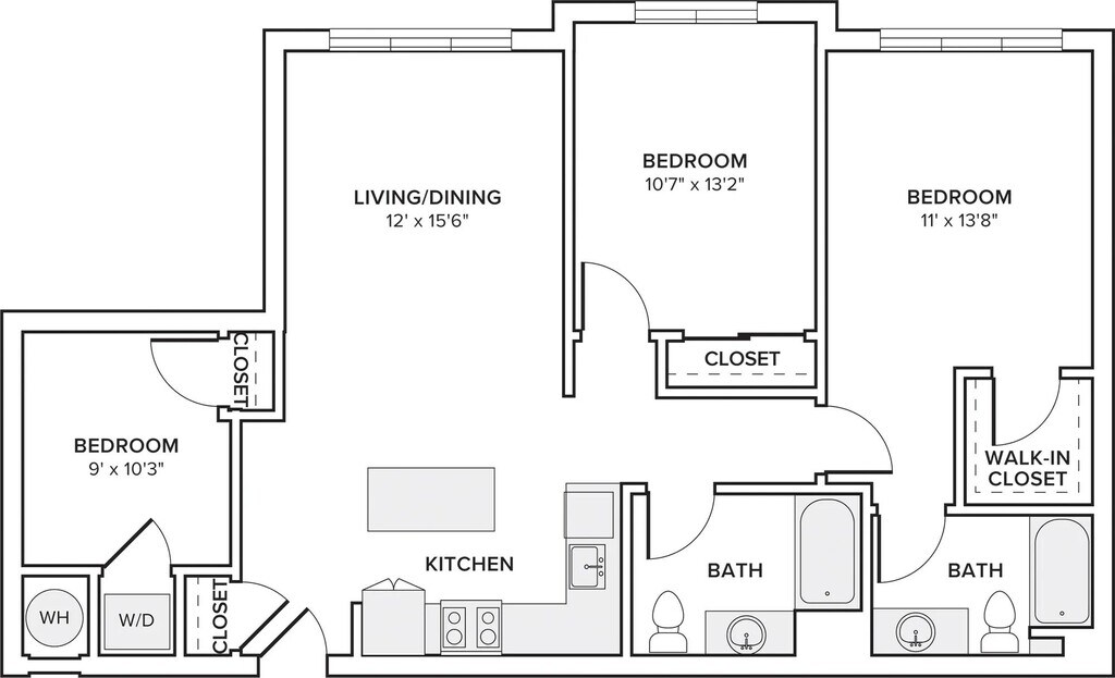 A12 - Plano 1 Unidad de apartamento: 1-307Modelo de apartamento: A12Desde $2,8061 Dormitorio, 1 Baño, 773 sq ftDisponible AhoraPlano: A11