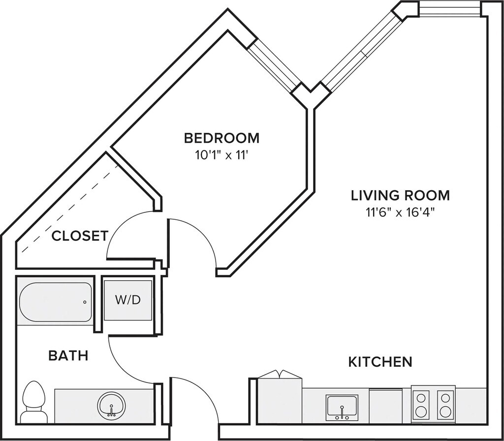 S02 - Plano 1 Unidad de apartamento: 1-341Modelo de apartamento: S02$1,390Estudio, 1 Baño, 403 sq ftDisponible AhoraPlano: S01