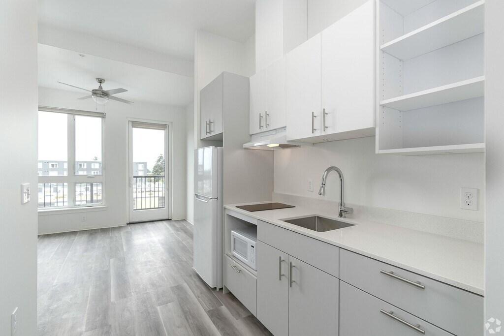Koz on Interstate is a new apartment community in Portland’s Overlook neighborhood, designed with modern style and everyday convenience in mind. Every apartment features high ceilings, oversized windows, and sleek vinyl flooring for a bright and polished look. Community amenities include a rooftop deck with BBQs and sweeping city views, on-site laundry, secure bike storage, and controlled access. Utilities are kept simple with a flat $175/month rate, covering electricity, water, sewer, garbage, and WiFi. Intentionally located at the N Killingsworth MAX station & on bus route 42, getting around the city couldn’t be easier. Store your bike on-site or park in the neighborhood without any parking fees or time limits. Plus, local favorites like La Perlita, Sweedeedee, Sit Tite, and the Tulip Shop Tavern are all within walking distance—perfect for your morning coffee, weekend brunch, or a night out.