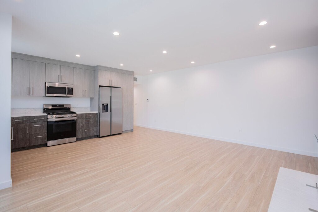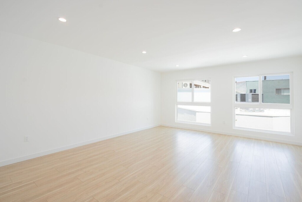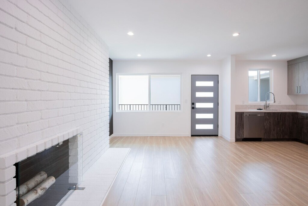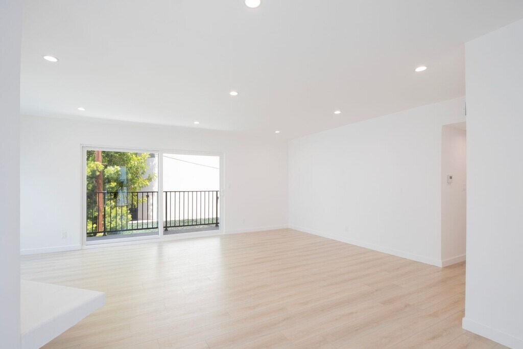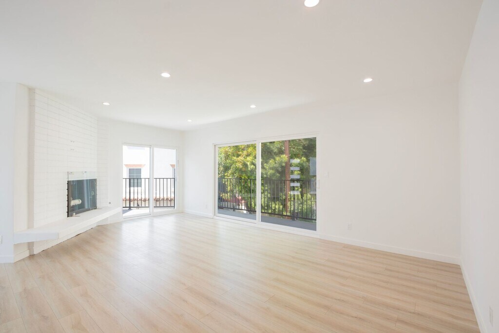 Live above it all in this beautifully renovated building. Choose from studios, 1 bedroom, 2 bedrooms, and 4 bedrooms, tucked away on a quiet, tree-lined street in the heart of Hollywood. Located just steps from Runyon Canyon, The Sunset Strip, The Hollywood Bowl, Birds, Bristol Farms, and The Guitar Center, this unit combines modern design, premium finishes, and unbeatable access to everything LA has to offer. Key Features: Top-floor corner unit with exceptional natural light and privacy Massive wraparound balcony—perfect for outdoor dining, entertaining, or relaxing Private exterior storage closet included Fully gutted and renovated with contemporary high-end finishes Quiet, walkable neighborhood near restaurants, hiking, shopping, and nightlife Interior Highlights: Brand-new luxury vinyl plank flooring throughout Custom kitchen cabinetry with Kohler sink and garbage disposal All-new stainless steel appliances: refrigerator with ice maker, oven, stove, microwave, dishwasher In-unit washer and dryer Sleek LED recessed lighting and backlit LED mirror in the bathroom Spa-inspired bathroom with glass-enclosed shower, modern vanity, and Kohler toilet Stylish decorative fireplace in the living area New windows and doors to maximize natural light and energy efficiency Roll-up blinds with blackout options for privacy and comfort Central heating and air conditioning Ample in-unit storage plus private exterior storage closet Community Features: Professionally maintained landscaping, courtyard, and fountain features Secure bicycle rack Located on a peaceful, tree-lined residential street just moments from major attractions Unbeatable Location: Walk to: Runyon Canyon The Sunset Strip Hollywood Bowl Birds, Bristol Farms, The Guitar Center, and more * Rent listed is net effective with 1 month free on 12 month lease