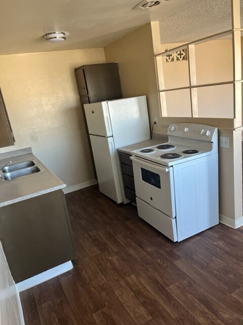 Apartments includes: • Gallery style kitchen with dining room • Wall unit air & amp heating • Refrigerator • Electric stove