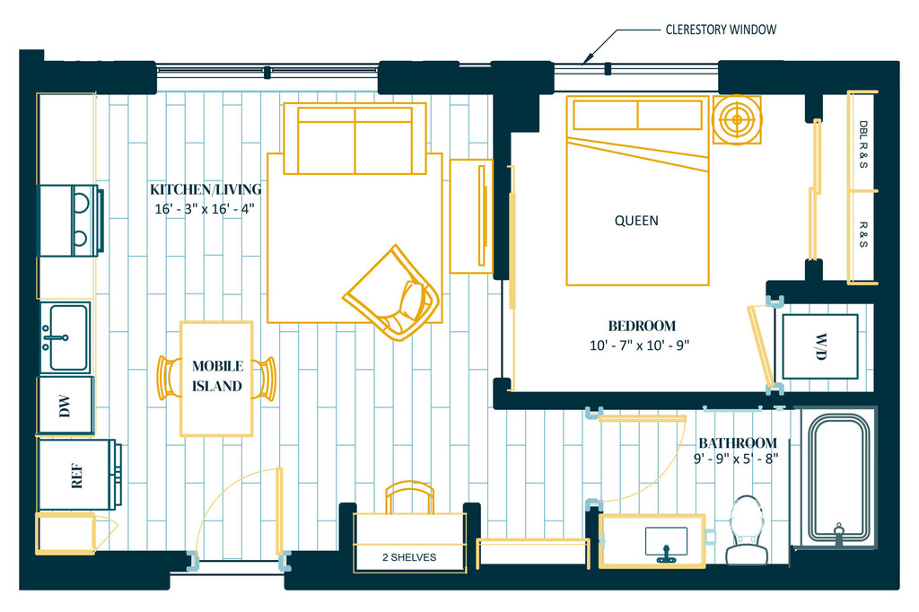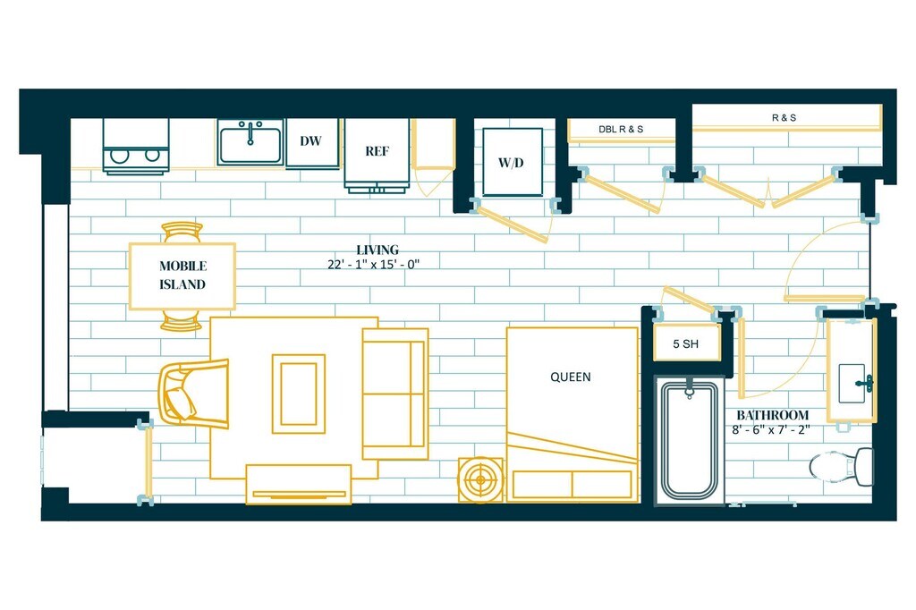Estudio, 1 Baño, 496 pies²Precio Mensual TotalDisponible AhoraGalería del Modelo
