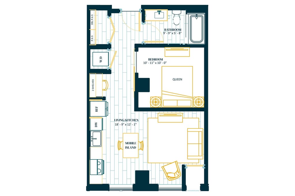 1 Dormitorio, 1 Baño, 579 pies²Precio Mensual TotalDisponible AhoraEl más baratoEsta opción tiene los precios más bajos para este modeloGalería del Modelo