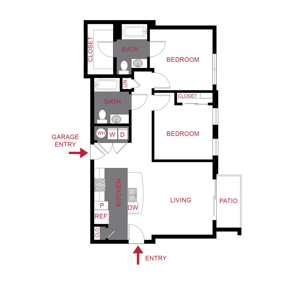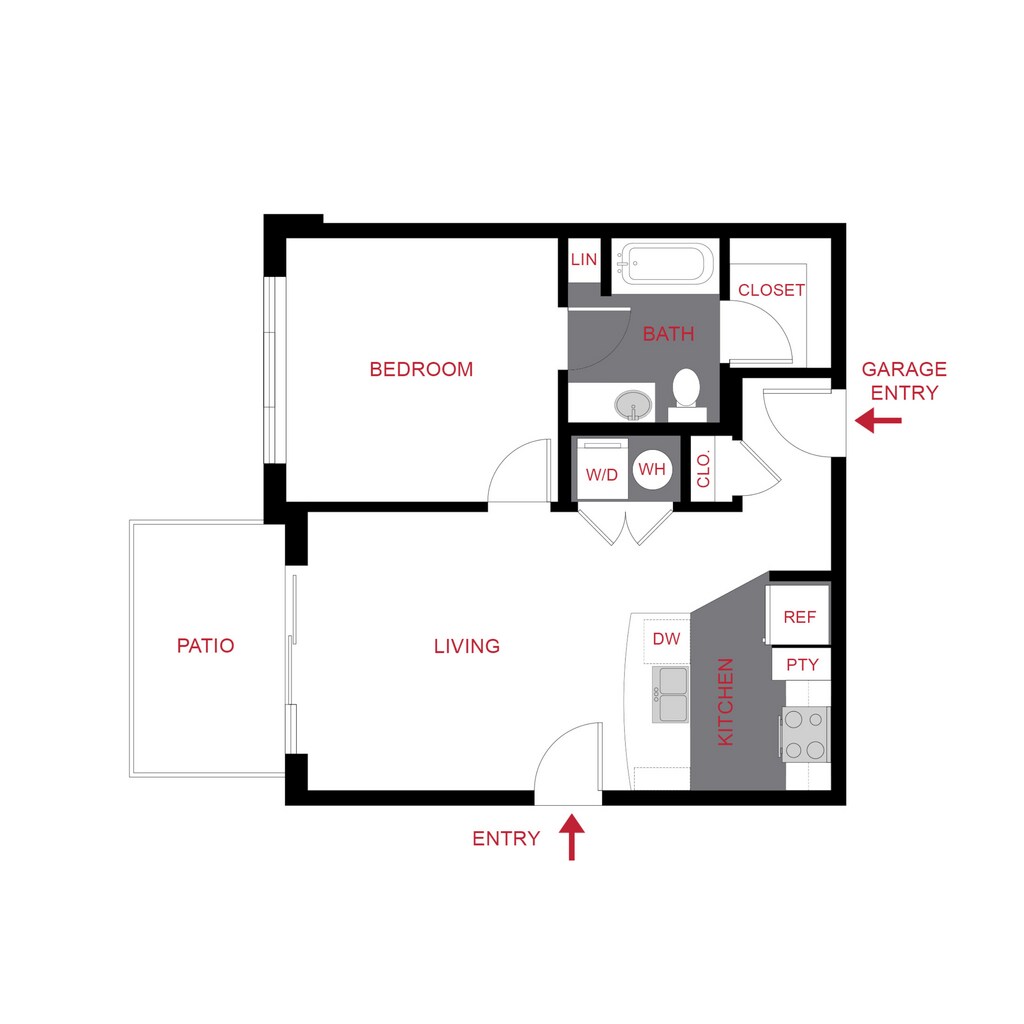 Modelo de apartamento: A5Desde $1,8051 Dormitorio, 1 Baño, 738 sq ftDisponible Ahora![]()