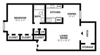 Modelo de apartamento: 1b1bDesde $1,1001 Dormitorio, 1 Baño, 750 sq ftDisponible Ahora![]()