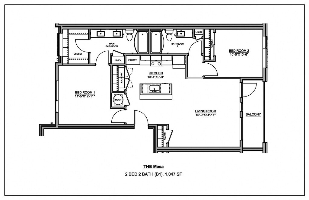 Modelo de apartamento: The MesaDesde $1,6952 Dormitorios, 2 Baños, 1064 sq ftDisponible Ahora![]()