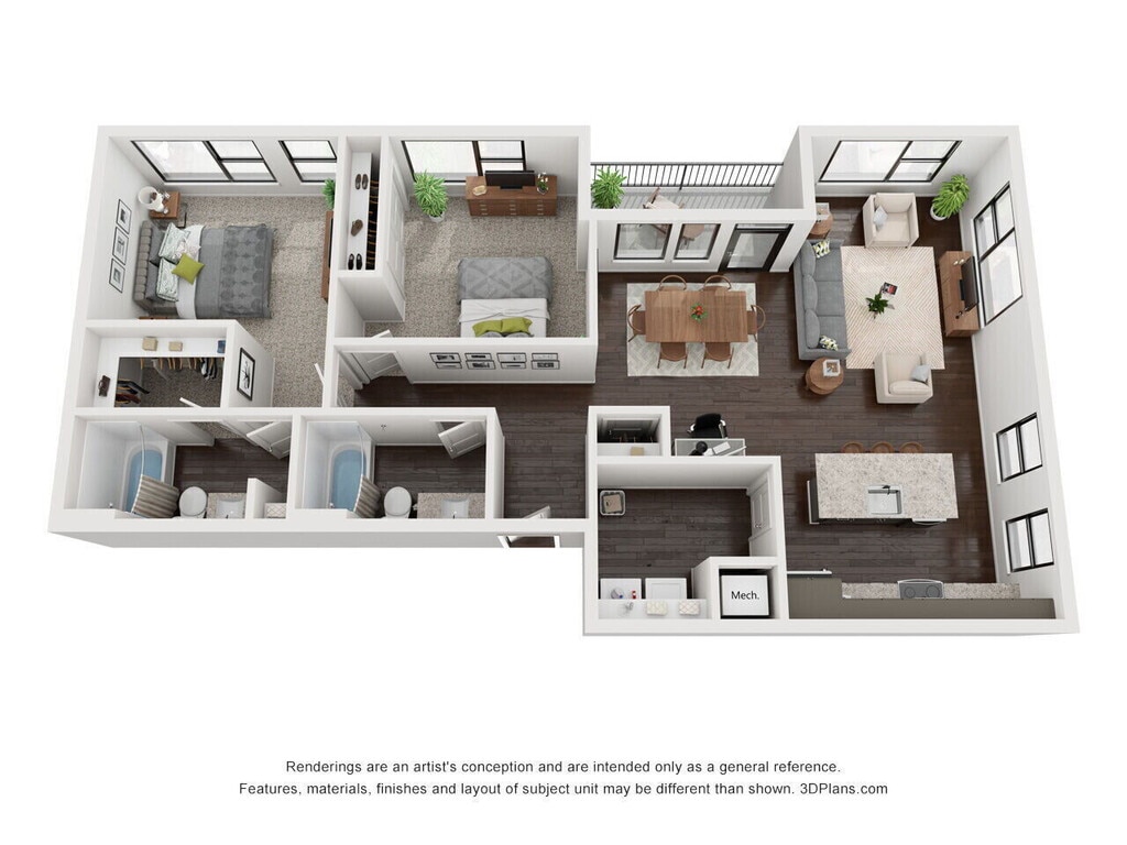 2 Dormitorios, 2 Baños, 1221 pies²Galería del Modelo