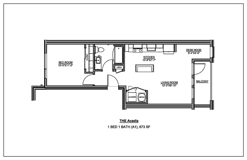 The Acadia - Plano 2 Unidad de apartamento: 1211Modelo de apartamento: The Acadia$1,3401 Dormitorio, 1 Baño, 642 sq ftDisponible AhoraUnidad de apartamento: 1311Modelo de apartamento: The Acadia$1,3401 Dormitorio, 1 Baño, 642 sq ftDisponible AhoraThe Laurel