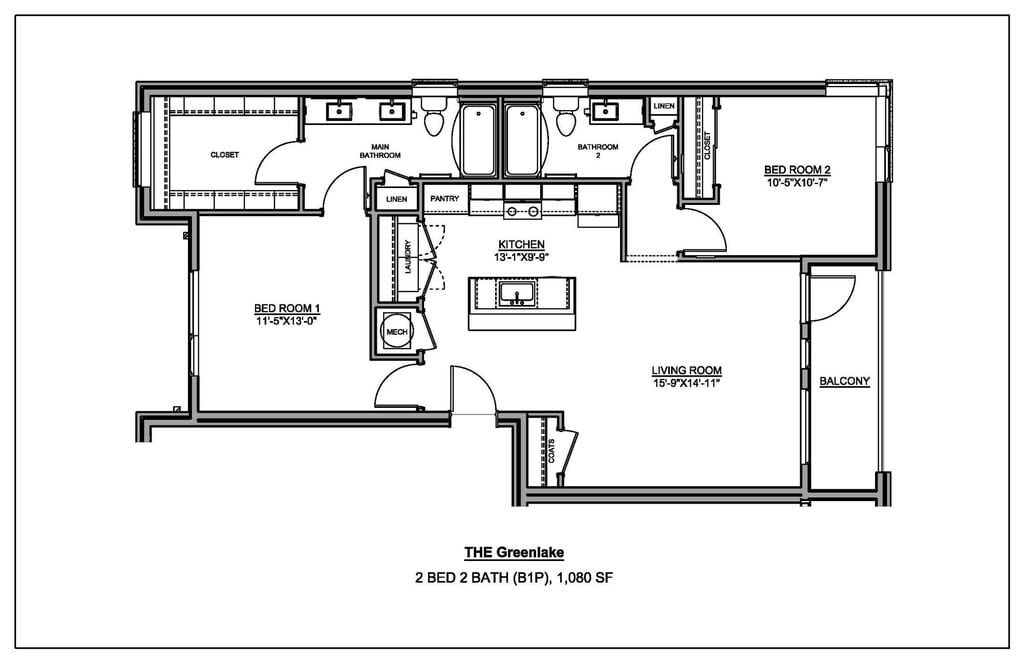 Modelo de apartamento: The Greenlake$1,7902 Dormitorios, 2 Baños, 1122 sq ftDisponible Ahora![]()