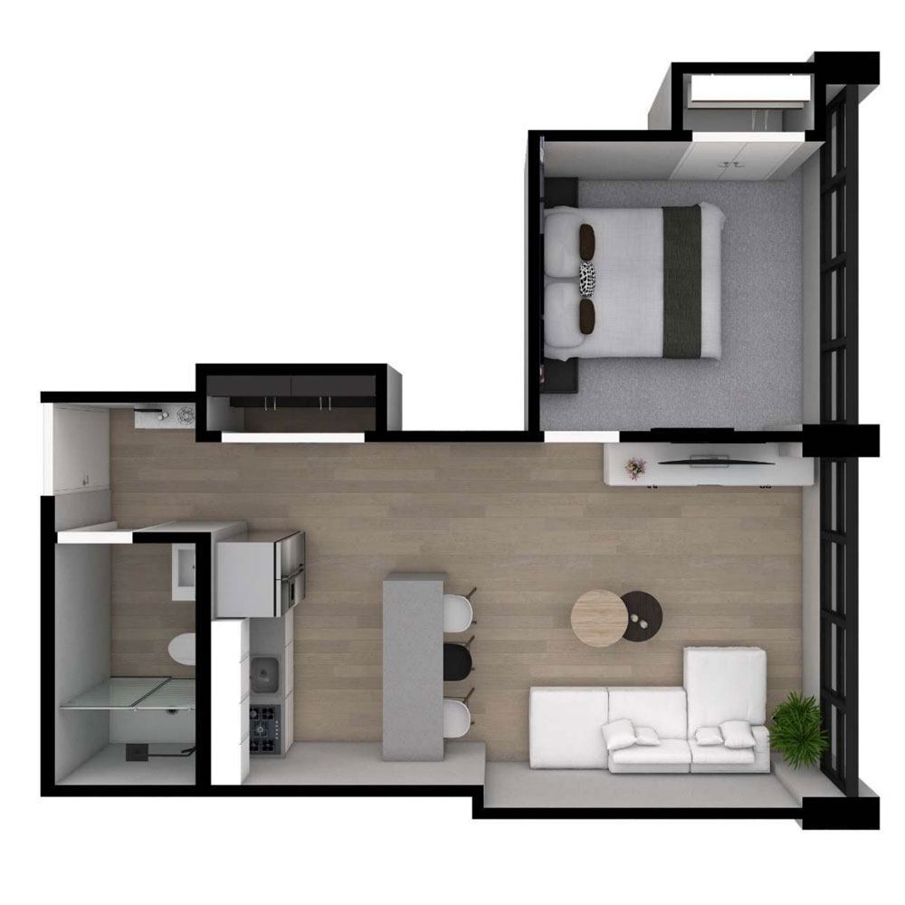 Estudio, 1 Baño, 480 pies²Disponible January 12, 2026El más grandeEsta opción tiene las unidades más grandes para este modeloGalería del Modelo